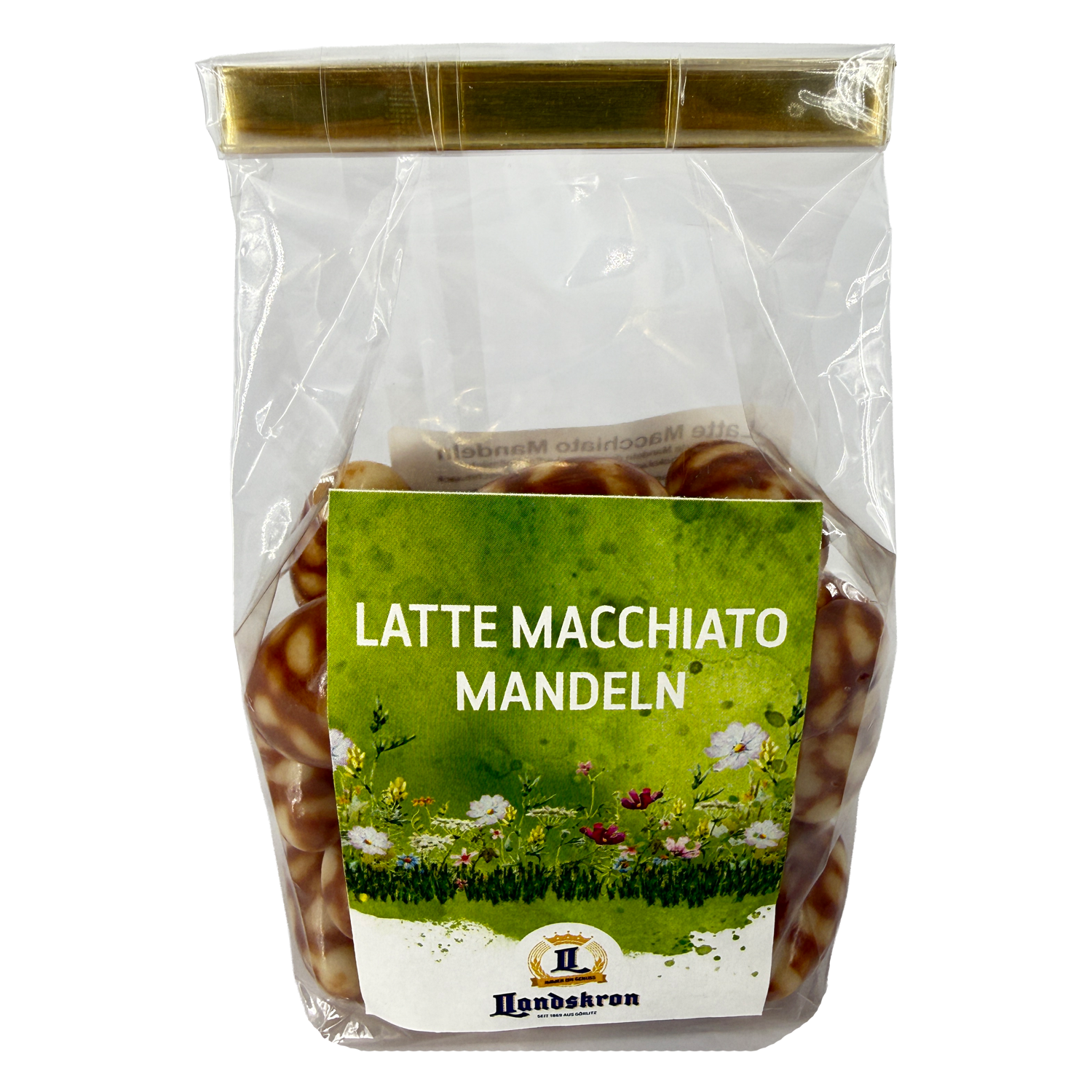 Geröstete Mandeln dragiert mit edler Vollmilch- und weißer Schokolade mit Latte Macchiato-Geschmack
