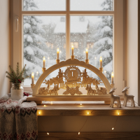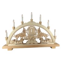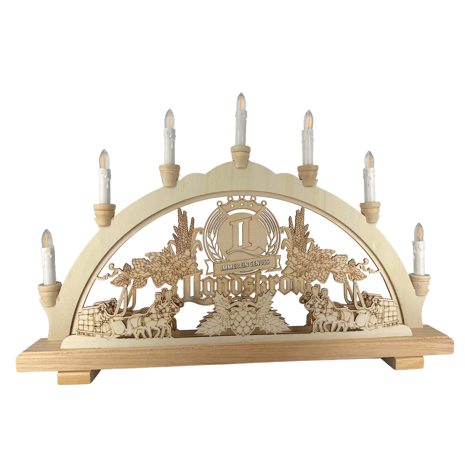 Holz Schwibbogen Landskron mit indirekter LED-Band Beleuchtung und LED Spitzkerzen